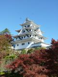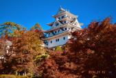 | 今回の城巡りでは初めての木造造りの城です。模擬天守ではありますが、さすがに昭和8年の建造、木造再建城としては最古であり城内の廊下・階段はミシミシと音がなり風流です。この日は紅葉狩りの家族やペアが多く駐車場に入るのに相当時間が掛かっているようでした。それだけに城周辺の紅葉は赤が鮮やかで、とても良い日での登城でした。 |