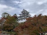 | 続37城目。 大垣城を除く岐阜県の3城を巡りました。 一宮でレンタカーを借りて移動しました。土砂降りでしたが。 一宮から郡上までは約1時間くらいです。ICから郡上八幡城はすぐ近くですが、 城下町っぽく道が狭いです。 山頂に駐車場がありますが、さらに狭いです。一方通行ですが運転注意です。 木造での再建天守ですが、紅葉と相まって綺麗なお城でした。 スタンプは天守1階にあります。 |