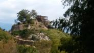 | 車で行くと急に崖の上に何かあるのに驚く。 あれなのか?凄すぎる! 車でかなり上まで行けるので登城はかなり楽ですが、 歩き始めていきなりの大矢倉でまた驚かされました。 そして本丸は岩の要塞。 天空の城というより天空の要塞でした。 |