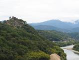 青春18切符で巡る城の旅の最終目的地です。名古屋から快速で中津川駅まで。駅からは今回の旅で活躍しているレンタサイクルでひたすら城を目指します。駅前の観光物産館でレンタサイクルを確認するとダイソー楽器店にて借ることが出来るとのこと。楽器屋さんで1000円(返却時に500円返してくれます)払って場所と距離を確認。駅からは約6?ほどとのことで、電動アシストをフル活用しながらひたすら漕いで行きます。約30分ほどで苗木遠山資料館へ。月曜日は閉館日のようで、資料館へは入れませんが、スタンプと朱城印は購入できました。登城し本丸から見下ろす木曽川は一見の価値があります。 |