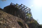 岩盤の上に築かれた天守を模した展望台が見事です。懸け作りが素晴らしい。清水寺、福山城の湯殿にあります。仙台城は、想像の絵があるだけです。展望台から景色をみていると、竹田城を思い出しました。天気もよく恵那の山々の景色が素晴らしい。 |