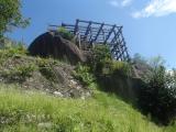 | 平日で直行バスがないので中津川駅1番バス乗り場、加子母・付知方面行きで12分の苗木バス停で下車、道々に出てくる案内に沿って資料館まで徒歩15分強。急に雷雨が降ってきて本丸まで行けず、、、マチュピチュ感は岩村城よりこちらのほうが強いです。 |