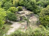 中津川駅から北恵那交通付知峡倉や温泉行きバスに乗り苗木まで。12分程です。そこから徒歩で苗木遠山資料館まで。スタンプを押し、お城の資料を頂きお話を伺う。歩きやすい道です。足軽長屋まで登ると、お城が見えて感動しました。風吹門を通り大矢倉へ登る。三の丸ー駈門ー牢屋ー戦国井戸ー天守展望台ー馬洗い岩ー笠置矢倉ー二の丸ー的場と見て廻る。本丸へ入る前の武器蔵跡がよく残っています。石垣はいろいろな技法が見られておもしろいです。 |