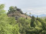 | 続69城目。 中津川駅からバスで20分移動。 苗木バス停から、大雨での中、徒歩15分程で中津川市苗木史料館へ行き、スタンプゲット。 その後、史料館から写真の城跡が見える場所までは徒歩5分くらいでした。 雨がひどかったので、登城はあきらめてましたが、見れる場所まで行けてよかったです。 |