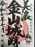 | 愛車にて。車のナビでは、美濃金山城も、可児市観光交流館も出てきませんでした。可児市戦国山城ミュージアムでヒットしたので、ここへ向かいました。スタンプのある可児市観光交流館と同じ場所でしたので、ここでスタンプを押し、美濃金山城登城用の地図をいただきました。車で向かいましたが、道が狭いです。運転に自信のない私は、頂上近くの駐車場まで行かず、途中の蘭丸広場に車を停めて登城しました。が、酷暑の本日に山城登城は、ちときつかったです。道中、登山道も、案内板も、説明碑も、キレイに整備されています。私には登るだけでもキツイのに、山城を作った昔の方々、そして現在手入れをされている係の方々、みなさまのご努力献身に、頭が下がります。登城達成の満足感と共に、汗だくになって下山しました。 |