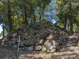 続45城目。戦国山城ミュージアムで一通り歴史を学んで登城。車で出丸跡の駐車場まで行けるので登城は楽。ただ途中の道が狭く、対向車に出くわしたらちょっと大変。本丸跡までは数分で到着するが、途中破城された痕跡が崩れた石垣から伺い知れる。登りは短いが暑くてしんどい。 |