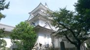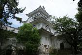街中に小さいながらも、どっしりとした天守閣はよく目立つ。天守閣の白漆喰、天守台の石灰石の白さが際立つ城です。水都の城は、川の流れを上手く利用している。 |