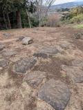 | 山中城跡からレンタカーで興国寺城跡へ向かう。 浮島地区センターでスタンプ押印後、野崎園さんで御城印購入。 城跡は駐車場も広い。 穂見神社横から天守台まで登る。 天守台の礎石が並んでいる。天守台からの景色である程度の高さであることがうかがえる。 |
