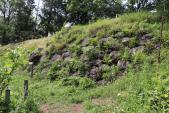 | 初めての本格的な雨の登城。 車での登城は道を入ってすぐの駐車場がいいかも。城址の広さがわかる。 スタンプは、雨に濡れないように箱に入っているがスタンプ台は屋根がなく スタンプ帳が濡れないように傘を差しながら持ったまま押印。何とかうまく押せた。 天守台への道は滑るし草が生い茂っていてズボンがずぶぬれ〜〜。 城址は広く、本丸北側の土塁と空堀はなかなか見ごたえあり。 |