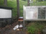 土塁と大空堀に囲まれたお城ですね。天守台の礎石が残されておりましたが天守のような建物はなかったとの事。 スタンプは神社横の説明看板の左にありました。 |