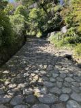 江戸時代の岩で舗装された坂があって、つらかった