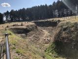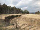 | 駐車場にガイダンス施設建造中でした。城址も新しめの切り株や工事中箇所もあり、整備急ピッチという感じです。なんか力を入れているなぁ感が感じられました。 外堀、内堀ともかなりの深さです。見ごたえがあります。 |