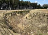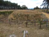 | 高天神城跡から、途中のさわやかハンバーグでランチをとり、車のナビ通りに到着。直行すれば30分ほどだろうか。このあたりは交通量が少なく、快適ドライブを楽しめる。 ビジターセンターは休館だったが、車を敷地内に停め、建物の裏側にある登城口にスタンプが置かれていたため、そこで押印。残念ながらパンフレットは品切れであった。 他に人はいなかったが、静かな環境でじっくり遺構を楽しむことができた。敷地内には順路が示されていて、回りやすい。しかし方向感覚は狂わされそう。 堀や土塁がしっかり残っており、全体像もつかみやすい。周囲の景色からすると山城っぽくないが、眼下に大井川を眺めると、結構高所にあるのだと気づかされる。 規模はさほど大きくなく、30分ほど歩き回って、次の目的地古宮城に向かう。 |
