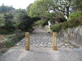 | 途中の石畳、江戸時代の再現とのことで風流ですが、デコボコしていてかえって登りにくく、雨の中だと滑らないか心配でした |