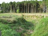 何と言っても馬出と堀が魅力の城。大井川と富士山の眺めもすばらしい。 駐車場向いの茶工場から一番茶製造の香りが漂う。 写真:二の曲輪中馬出三日月堀 |