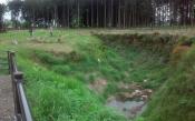 | かなり深い堀があり、当時を偲ばせるものがありました。 木の根っこなどが多くちょっとだけ歩きにくい感じですが、ありのままの感じが味わえていいかもしれません。そのうちいろいろ整備されそうな気がします。 駐車場にスタンプがあり、押印しましたが、 ティッシュなどでちょっと拭いてから押したほうが良かった。 駐車場の前の道路をはさんでお茶屋さんがあります。工場直売的な感じで、 そこでいただいたお茶がおいしかった。お茶を蒸す香りがとても心地よかったです。 お茶が好きな方はぜひ行ってみてください。 |