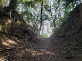 続45城目 (125/200)歴史小説を含め、難攻不落の城といわれている高天神城、今回初めて現地を訪れました。 丘陵地の中の山城で意外と比高差は無く搦手門からの急な階段を昇ると本丸に到着 崩れやすい土質の絶壁に取り囲まれており、確かにこの斜面を昇るのはかなりキビシイですね 本丸近くの遊歩道は結構荒れているので、足元の準備はしっかりとした方が良いと思います |