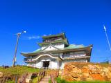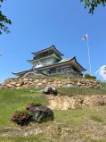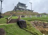 | 駅からこまくるバスで5分くらい。緩い上り坂を10分くらい歩いて到着。城の形した資料館みたいで城感はあんまりないけど景色は良いね。 |