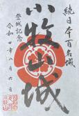 | 小牧駅からバス。市役所前下車。 山頂の小牧市歴史館でスタンプ。インクは少し薄め。 バスは巡回バスこまくるがおすすめです。1回分の運賃で1日何回でも乗れます。 |