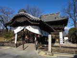 | 東門と西門は鎌倉時代につくられたもので、他の二つとは明らかに作りが違う。北門は駐車場の入り口で、江戸時代につくられた門にそのまま車が入っていく風景は違和感がある。 |