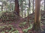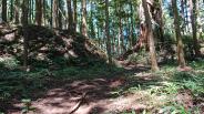 | 小さな丘に、びっしり土塁を巡らせて強力な要塞になっている。スゴイけど撮った写真はただの山道にしか見えない。 |