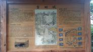 | 142城目。路面電車の市役所前駅から徒歩で向かう。城跡を含めた案内版や吉田城についての解説版が公園入口に設置してあった。本丸は周囲に石垣が作られていて、特に川沿い側の石垣の方が見応えがあった。 |