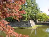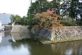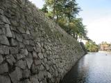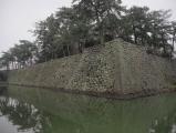 | 北畠氏館跡からマイカーで移動して登城。学生時代を過ごした町なので、過去に幾度となくこのすぐ近くは通っていたのですが、城跡内へ入るのは初。時間が長くない予定だったので、高山神社参拝者用駐車場を利用しました。 加藤清正の武者返しも見ごたえがありますが、まっすぐ高く積み上げる藤堂高虎の石垣も引けを取りませんね。手すりのない縁から内堀を除くとゾクッとすること請け合いです。 |