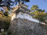 “続”150/200名城【2018年12月8日】 街に飲み込まれつつも公園として生き残った城。 北多聞櫓跡の長く直線的な高石垣などに高虎流の築城の匂いを感じる。 駐車場の「津まんなかガイド詰め所」に人がおらず、パンフ入手できず。代わりに高山神社社務所で、案内図をいただく。 日中の良い時間帯での登城が叶わなかったため、黄昏時の丑寅櫓のライトアップを狙いましたが・・・!? 空を覆い尽くす尋常でないカラスの大群(就塒前集合)には閉口した。 【2019年10月27日】 ハンディ版への押印とパンフ入手のため再訪。 |
