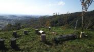 前日に登城するまでの交通手段を調べて高槻駅、摂津富田駅でレンタサイクル借りようか、バスに乗って行こうかと考えましたが、高槻市立自然博物館に安い駐車場を発見したので、当日はそこに車を止めました。登城口の目安になる塚脇バス停まで約2キロあり少し遠かったです。今までの投稿から台風被害で大変な状況にあるようですが、曲輪郡まではそうでもなかったが城郭では根元から倒れてしまった木々が至る所にあり、凄まじい状況です。倒れた木を切って少しずつ片付けられていますが、まだまだ時間がかかりそうです。山頂付近では桜広場として桜が植樹されていますが、これから大きくなって満開の桜を見られることでしょう。 |