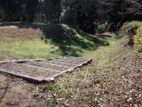 | 空堀と奥のお墓が戦国時代にタイムスリップします。 |