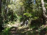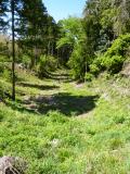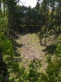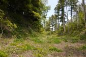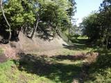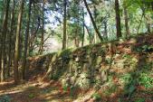 | 城跡と意識しないと単なるハイキング・コースのように見えてしまうので、先に寄った箕輪支所でいただいたパンフレットがとても役に立った。現在歩いている場所が全体のどこなのかがよくわかる。堀切の底から左右にそびえる曲輪を見上げながら歩くと、そのあまりの高さに、空堀の意義を実感。特に、大堀切の深さ・幅広さは規模が大きく、掘った人たちの手作業の苦労が偲ばれ、絶句してしまった。 |