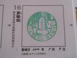 | 晴れ。バスで途中まで行き、学校横の道を上がって大手道から登城する。足元は整備されていて登りやすかった。スタンプは登っていった二の丸の広場に置いてある。観光ボランティアもいてはった。スタンプは良好。 |