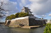 | 南海電鉄岸和田駅南口を出て徒歩10分ほどで入城しました。駅から城までの道が曲がりくねっていてなかなか複雑で、敵を撹乱するような縄張りになっていたことを偲ばせます。 現在は本丸と二の丸のみ残されていますが、往時は相当な広さだったようです。 100名城スタンプは天守閣1階の奥のほうにありました。天守閣への入館料は300円ですが、スタッフの方から「スタンプ押印だけなら無料ですよ。」と良心的です。 この復興天守閣は本来は5層だったはずですが、復興天守は3層になっています。正確さということでは復興ではなく模擬天守の部類に入りますが、どうしてどうして重厚で威厳に満ちた天守閣のたたずまいを見せています。 大手櫓門や本丸隅櫓、幅の広い水堀と石垣下の犬走り、本丸内の御殿跡に作られた八陣の庭の珍しい造り。こじんまりとした中にも色々と工夫を凝らした風情のある城址でした。 |
