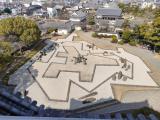 | 城のすぐそばにある市役所の第四駐車場(一時間まで無料)が便利。国指定名勝の「八陣の庭」は独特の形をした庭園で趣深い。堀と石垣に囲まれた天守の姿は美しい。 |