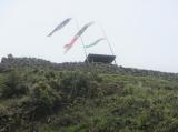 | 続日本76城目(161/200) 皆様の「かなりきつい」という書き込みと、スタート時の残り980mの看板から、序盤の上りが精神的に結構きつかったです。 ですが、残り500mのところの看板の「ここからなだらか」の文字で気持ちが楽になり、トータルではイメージほどはきつくなかったです。 上り45分、滞在15分、下り25分くらいでした。 当日は、地元のお子様方により巨大な鯉のぼりが設置された直後で、いい写真が撮れました。 |
