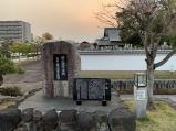 | 駐車場が無いとスタンプ帳にあったので、近くの図書館に駐車。2時間までは無料ということでラッキー。 踏切を渡ると長い石垣があり、期待感アップ。登城口の門も立派。でも外から天守の様に見えた建物はガラスの窓が並んだ城とは程遠い建物。そこからさらに高いところに天守台と思われる石垣があります。あそこに木造で城が再建されていたらいいのになぁと思いながら次へ向かいました。 |