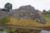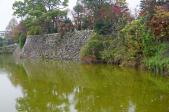 | 115城目。近鉄郡山駅下車し、徒歩で鷺池を沿うように半周して裏門側から入城。城跡散策道となっていて、そこから天守台側を見ると、広大な石垣と堀が続いていてスケールが大きく思えた。天守の石垣に埋もれているさかさ地蔵も見学。 |