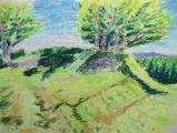 榛原からバスで大宇陀下車。道の駅を背にして1個目の信号左曲がるとすぐ千軒舎。立派なパンフいただきました。裏がすぐ登山口。城跡まで600m。舗装されてる。残り100mは舗装なし。山城らしくなってきたところに「へびー」が道を横切った。でか。気持ち悪。城巡りでお初にお目にかかりましけどお目にかかりたくないです。ほどなく本丸。その上天守。ながめよし。山と木だらけ。本丸でランチタイム。けどへびーが気になるのでとっとと帰る。帰りもへびーの死骸が道の真ん中で横たわってました。登城はへびーじゃなかったけど、へびーのいた城でした。道の駅には足湯があったのでバス待ちのあいだ足湯で疲れが取れます。 |