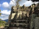 | (続24)晴れ。車で行きました。以前に熊野古道観光できた時には気がつかなかったのですが、新宮に入る橋から見える石垣がすごく印象的です。まず歴史民俗資料館でスタンプを押して、城跡に行きました。車を駐車場に停めて登りました。やはり石垣がすごいです。景色も良かったです。 |