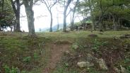 車で行けるところまで登り、あとは徒歩。廃城により壊された石垣が点在しており、生々しく感じました。 播磨と但馬に通じる街道の要衝だったということが、頂上からの眺めでよくわかりました。 |