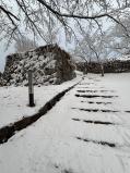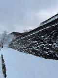| 備中高松から移動。 岡山?鳥取の県境あたりを走行していたが、雪が大降りで道が見えないような状況で、 行くまでに2時間30分くらいかかった。 その影響で、米子城三之丸番所でのスタンプ押印が営業終了で閉まってしまい押せず。 日没が近づいていたこともあり、風と大雪の中、急いで登城。 たまたまとはいえ、米のように真っ白になった城を見に行く形になった 大雪で段差が見にくくなっていたものの、先に行った人が足跡をつけてくれており、それを目印に本丸を目指す。片道20分くらいで着くも寒さと風の吹き付けが強くなったことから、ほどほどにみてすぐに退散。 退散後にスタンプは終日押せる山陰歴史館に行って済ませてきた |