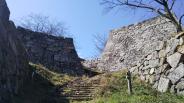 57城目(新 城目) 3月初旬にもかかわらず、好天で気温も12度位と暖かく、登城日和なり。グーグル先生に導かれ、石仏登山口より登って、石仏に挨拶しながらぬかるんだ道を進むと、いきなり石段と石垣が目に飛び込んできた。緻密に組まれた石垣の見事さに目を奪われながら天守台へ。雪を被った大山と海原を一望できる、かつての天守閣からの眺めは絶景だったであろう。 |