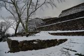 | 米子城は石垣しか残ってなく、天守の石垣には雪が降り積もるぐらい小高い丘にあり、良い景色が眺められました。 |