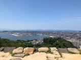 ここに来るのは7年ぶり。あの時も小高い山の上にある種類豊富な石垣に感動しましたが、改めてその良さを実感しました。スタンプは登城前に山陰歴史館で押印。現在、ところどころ伐採工事をしているようで、通れる所と通れない所があります。15分程度で天守閣に到着。見晴らしは抜群ですが、その分遮るものがなく日差しをモロに受けます。帰りは水手御門跡からのルートで下山。途中、海が見渡せる所があり、心地よい風を感じることができました。 |