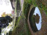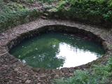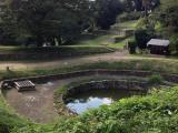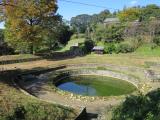 | 山城には珍しい、月の池・日の池という貯水池があり城郭を想像しながら見学しました。 入口にボランティアらしきガイドの方がいて、一番好きな城は?なんてアンケートをされました。新田神社裏を回った下に野面積みの原型があるとガイドさんに教えてもらい尋ねました。復元された石積みとは違い。ちょっと感動しました。 |