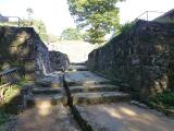 | 駐車場に停めてから、スタンプ設置場所まで結構歩きます。距離は600mと書いてありましたが、山道なので時間はかかります。途中イノシシとスズメバチ注意の看板があり、スズメバチには遭遇してしまいました。 本丸近くの石垣は見応えがあります。 |