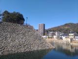 観光協会でスタンプ。三原駅直結の天守台跡に上がった後、堀の周りをまわる。 |