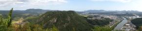 26城目/続100沼田川をはさみ、左の山が「新高山城」で右の山が「高山城」 |