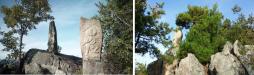 本郷駅到着後、本郷生涯学習センターでスタンプを押し、ここから歩いて15分ほどで登り口へ。ガイドブックやパンフレットの地図で表記されているより道が狭いので、ちょっと戸惑いました。連日の山城訪問でやや疲れが溜まっていたので、設置してあった木の杖を拝借して登山開始。出発時からずっと蚊につきまとわれ、「ええ加減にせんかい!」と杖を振り回しながら、自然と早足に。途中黒い蛇に遭遇しましたが、こちらからちょっかいを出さない限り、危険はなさそうな雰囲気でした。学習センターのスタッフは「30分ぐらいかかる」と言ってましたが、蚊に追い立てられたせいもあって16分で本丸到着。三原駅のコインロッカーに余分な荷物を預け、身軽で来たのも良かったのかも(本郷駅はロッカーなし)。天守台跡のほうに足を伸ばすと、石碑がいくつも建っていました。「新高山城址」と刻んであるのかと思ったのですが、いずれも仏教関連らしく、ちょっと異様な感じでした。 下山して駅まで戻るまでけっこう時間がかかりましたが、ギリギリで上り列車に乗ることができ、三原発空港行きバスもギリギリセーフでした。 |