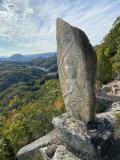 | 川の対岸に新高山城の看板があるもなかなかたどり着けず 本郷駅前の立派な学習センターの道で橋を渡り川沿いの道から工場駐車場の前の道を抜けると登山用の駐車場があります。 前日に新高山城保存会の方々が掃除をされたということでとてもきれいでした。 本丸の石仏お地蔵さんがたくさんおられて、とても心が和みました 。下城時にふもとで観光協会の方がアンケートを取っておられて、答えたら新高山城をバックに新幹線が走るオリジナルカードを頂けました。 |